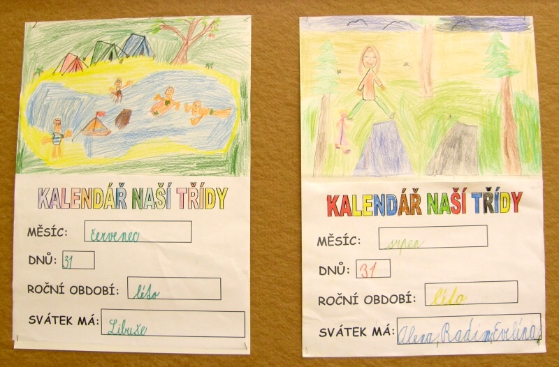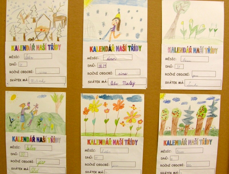 Děti byly rozděleny do skupinek. Každá měla za úkol svůj kalendářní měsíc zařadit do správného ročního období, zjistit počet dnů v měsíci a také zapsat, kdo ze spolužáků má v daném měsíci svátek. Nakonec se děti snažily nakreslit obrázek, který vystihoval, čím je jejich měsíc typický.