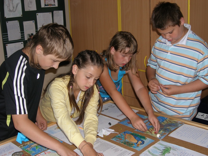 S největším nadšením tvořily děti při výtvarné výchově a pracovních činnostech obyvatele řeky. V hodinách českého jazyka vyhledávaly o řece básničky a lidová rčení. V rámci hudební výchovy jsme na téma řeka zpívali písničky a poslouchali skladby.