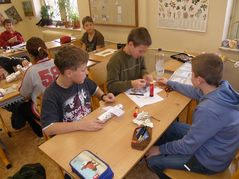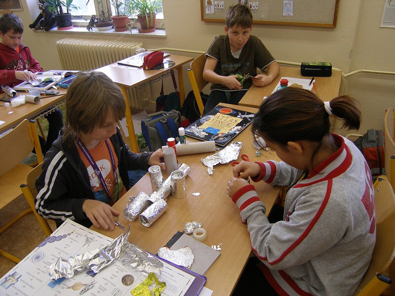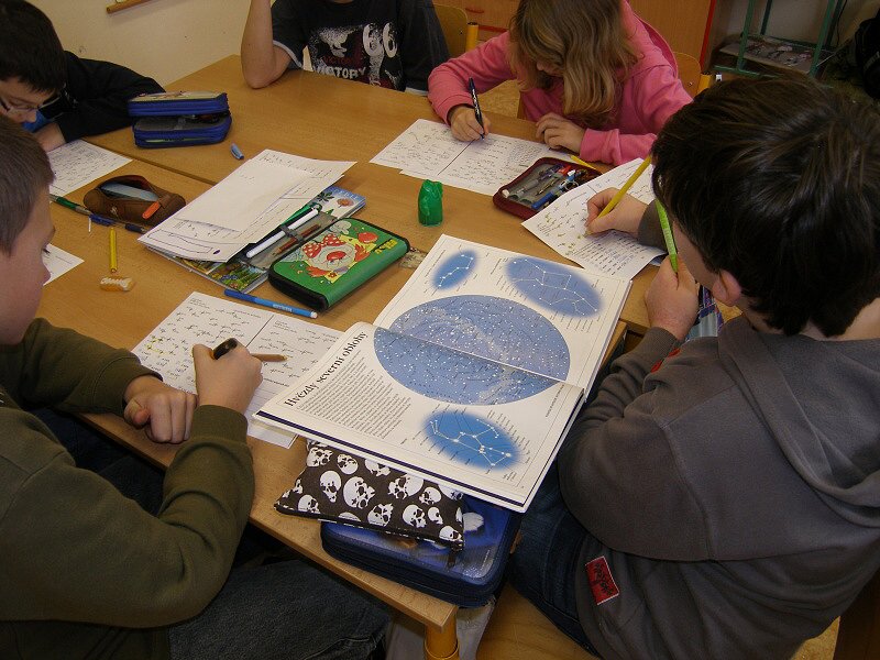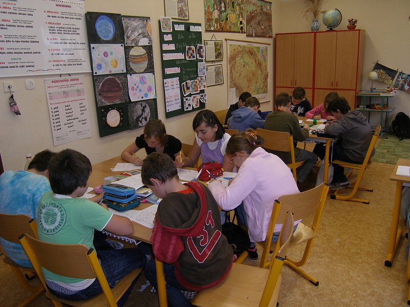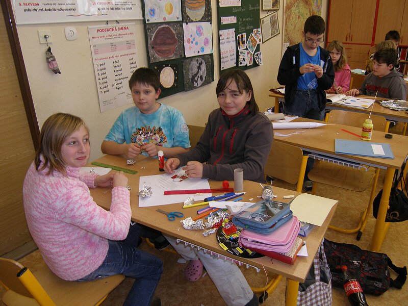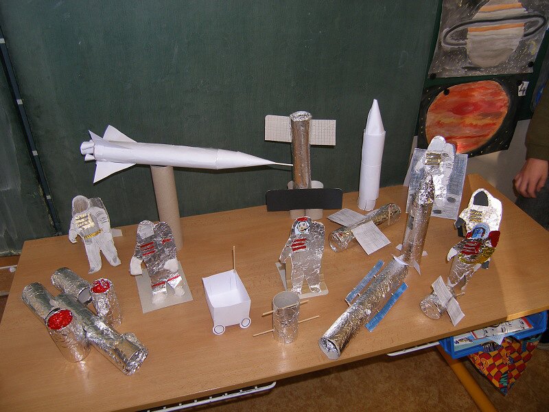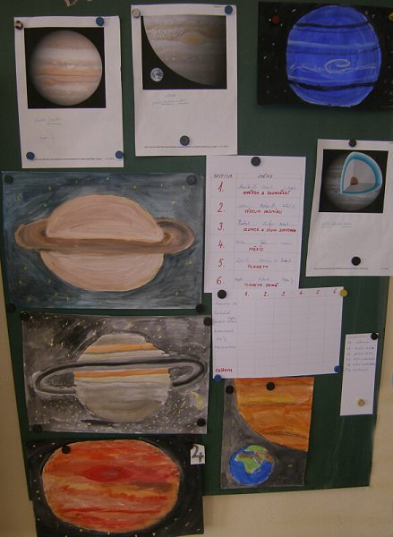 Ve následujících dnech ve třídě byly děti rozděleny losem do skupin. Společně se věnovaly mnoha aktivitám: doplňovaly neúplný text, řešily úkoly z českého jazyka, v matematice se propočítaly až k souhvězdím, řešily hádanky o planetách. Prokázaly, že umí spolupracovat. Společnými silami vytvořily velmi zdařilé prostorové vesmírné objekty a astronauty. Žáci si poslechli i hudbu Vangelise a zvuky z vesmíru R. Jíši.