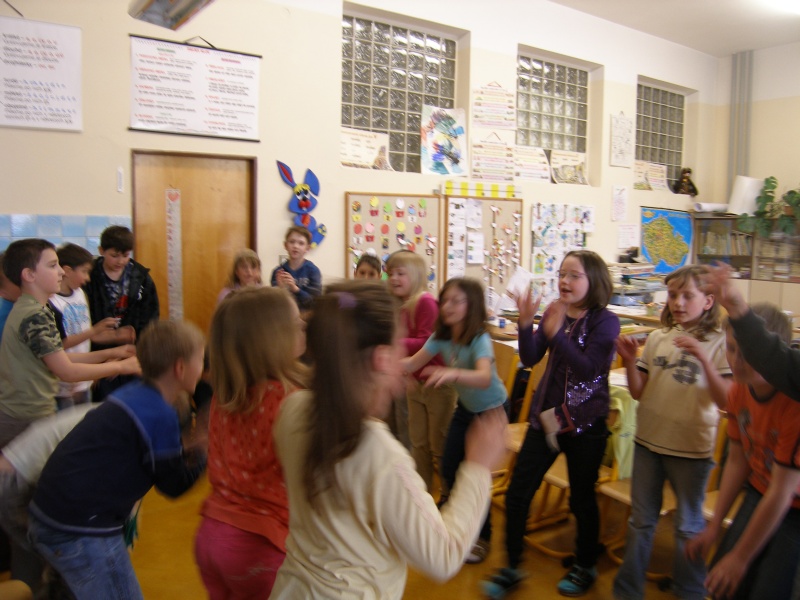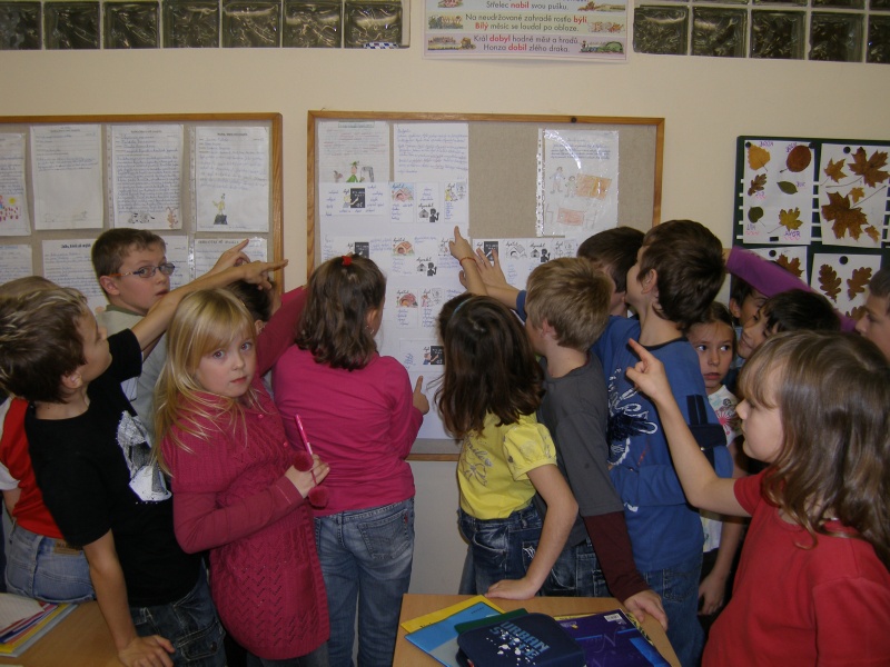 V českém jazyce třídili, vyhledávali, zaznamenávali a formou dramatizace napodobovali vyjmenovaná slova. Ve skupinách je procvičovali formou hry, rychlejší žáci vybarvovali obrázky vyjmenovaných slov. Doma potom některé děti společně s rodiči vymýšlely příběh na vyjmenovaná slova po B.