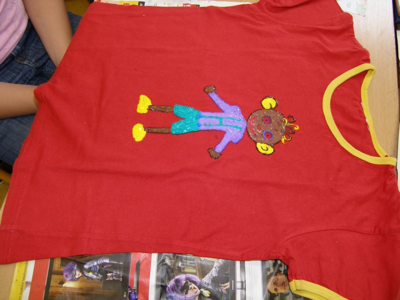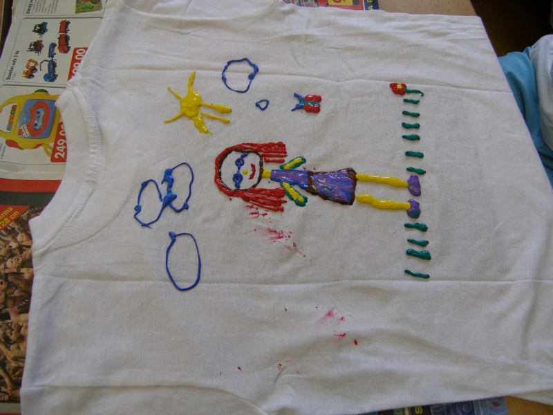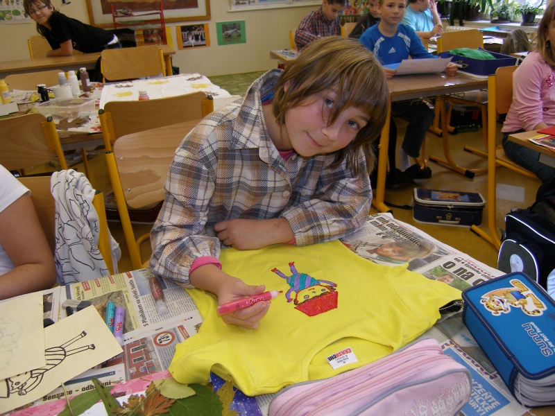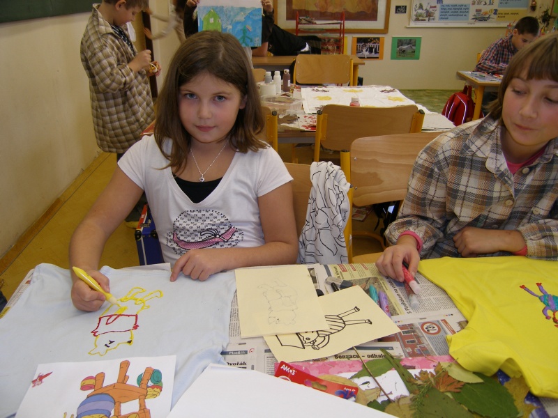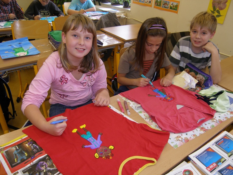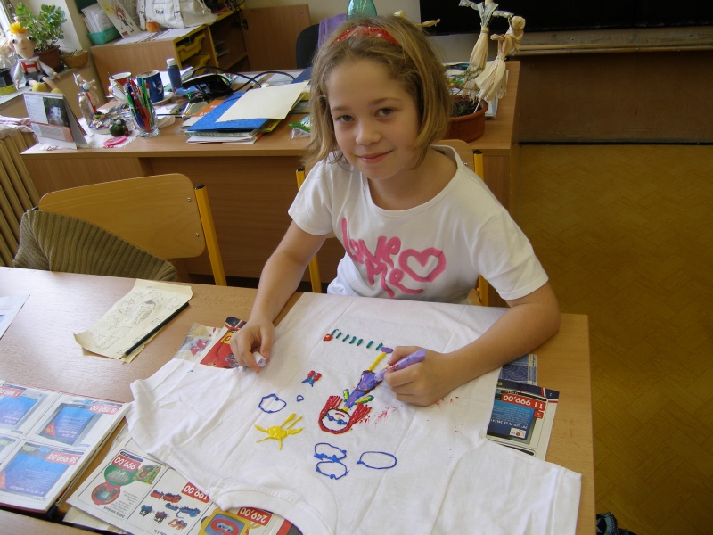 Ve výtvarné výchově kreslili své oblíbené pohádkové postavy. Vyvrcholením byla malba pohádkových postav na trička.