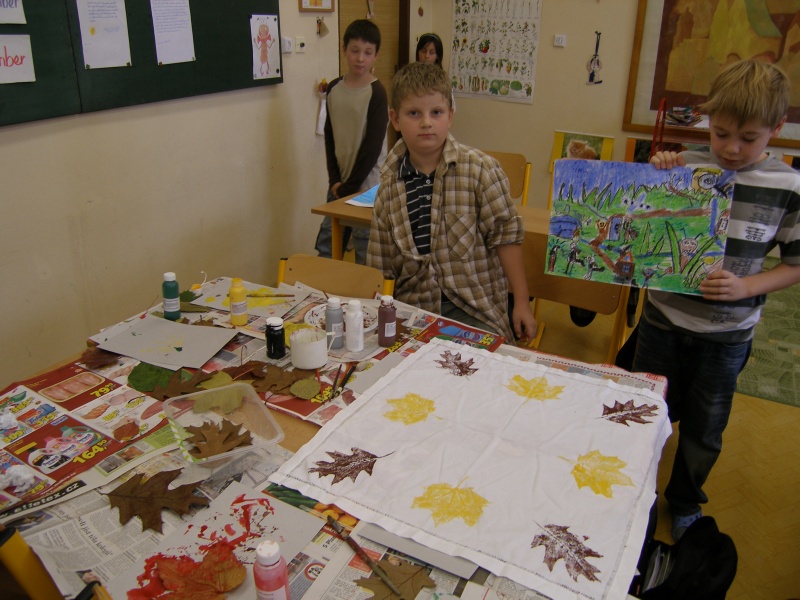 Další části projektu proběhly ve třídě. V hodině prvouky jsme formou hry třídili květiny podle barvy na květech. Ve výtvarné výchově děti malovaly zvířátka žijící v našich lesích a při pracovních činnostech vytřídily kousky přírodnin ze sáčků a nalepovaly je na paletky z kartonu.
