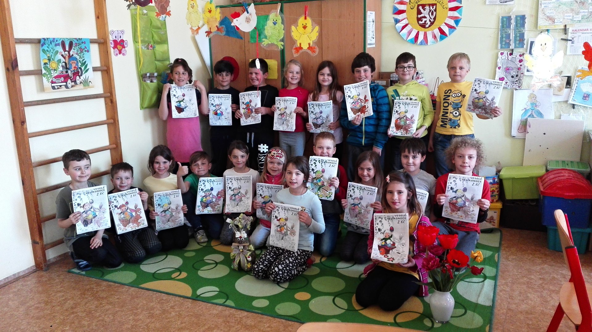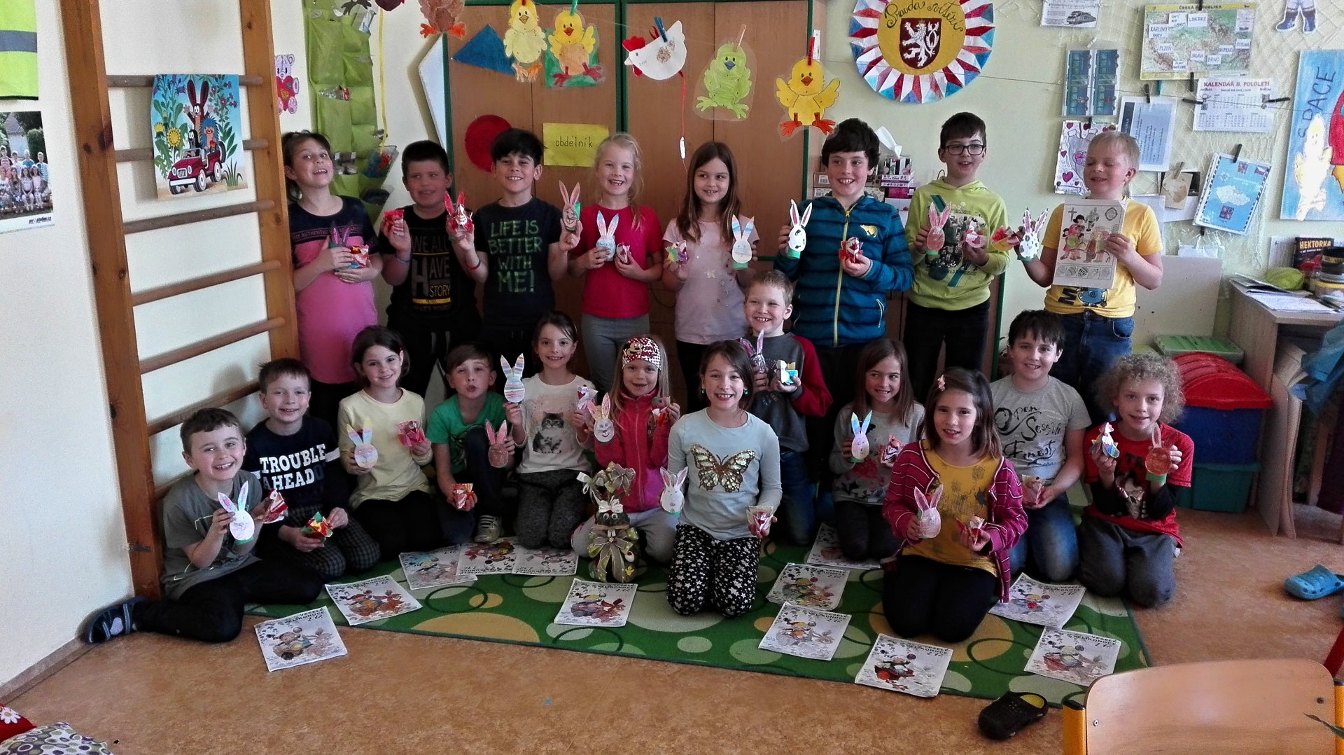 Na blížící se Velikonoce jsme se připravili už v pátek 12. dubna. Dohodli jsme se společně na oblečení do barev jara.