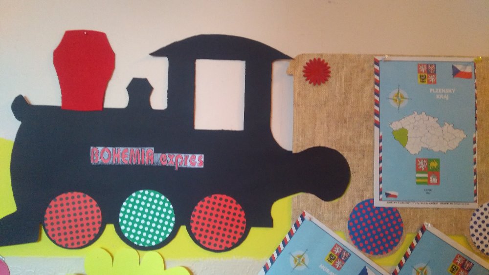 Projížďka pastelkovým vlakem po 14 krajích České republiky se uskuteční v průběhu celého školního roku. Každá družina má svůj vláček vystavený, a tak je jasné, kde se právě nacházíme. V každém měsíci se k tažné lokomotivě připojí jeden nebo dva vagonky, podle toho, kolik krajů v daném měsíci navštívíme. Součástí projektu jsou i krásné mašiny, které zvětšené na A3 formát papíru děti ve skupince vybarvují. V každém kraji se dozvídáme něco nového, povídáme si o městech, malujeme znak krajského města a poznáváme kouty naší země, kam jsme se zatím ještě nedostali. Poznáváme hory, památky, hrady a zámky, známé firmy a krásy přírody. Vlak BOHEMIA EXPRES nás bezpečně veze naší zemí a my se tímto projektem připojíme k oslavám 100 let vzniku naší republiky. Nezapomínáme ani na Slovensko – součástí projektu je malý slovenský slovníček a také si povídáme o našem nejbližším sousedovi zajímavé informace.